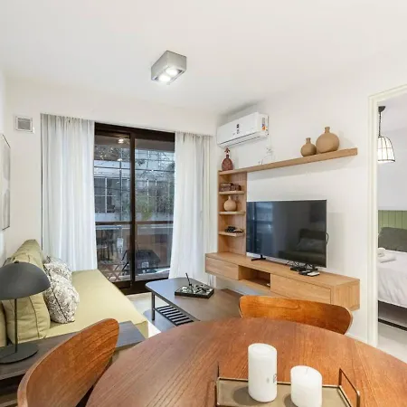 Departamento Boutique En Recoleta Con Check In 24Hs Apartment includes a balcony and a fully equipped kitchen with air conditioning for utmost comfort. Guests staying in the property will enjoy the convenience of hair dryers in the bathroom. Furthermore, a bidet and a bat is available.